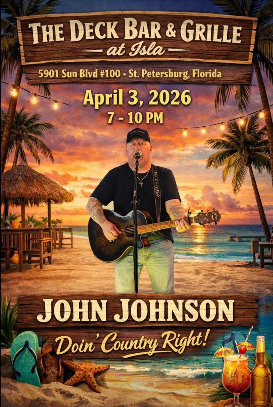 TGIF LIVE MUSIC We're kicking off the weekend with a BANG 🎉🎉🎉 TGIF LIVE MUSIC with JOHN JOHNSON 7-10pm. We welcome back John. Join us to support this local musician who migrated from Baltimore Maryland 9 years ago. He offers the best variety of country music with a mix of '80s '90s current and a passion for USA!